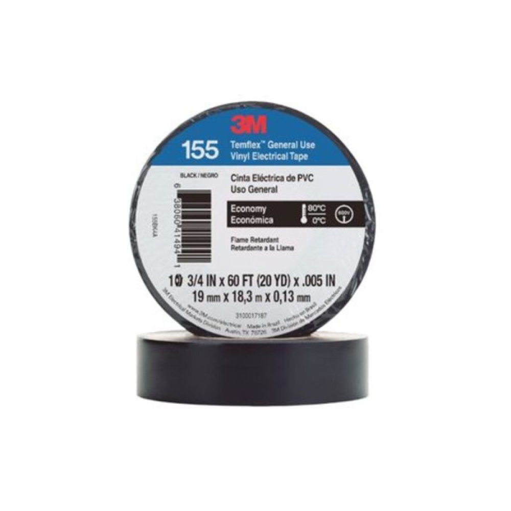 Aislamiento eléctrico confiable con el sello de calidad 3M. La cinta Temflex 155 ofrece una excelente elongación y adherencia, adaptándose perfectamente a las irregularidades de los empalmes de cobre. Su espesor y compuesto de PVC inhiben la corrosión y soportan hasta 600V, siendo un insumo crítico para proteger las conexiones de motores, fuentes y borneras contra la humedad y el polvo.